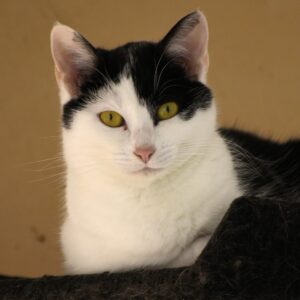 Elle passe son temps collée aux autres chats craintifs ce qui ne l’aide pas, un autre chat à la maison sociable chats et humains serait un gros plus dans son développement.