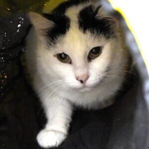 Naan est une rescapée issue d’un retrait pour syndrome de Noé. Ayant grandi dans un environnement très fermé, elle n’a probablement jamais eu de véritable contact humain avant son arrivée au refuge. C’est une petite chatte très craintive qui garde encore le réflexe de fuir dès qu’on s’approche d’elle.